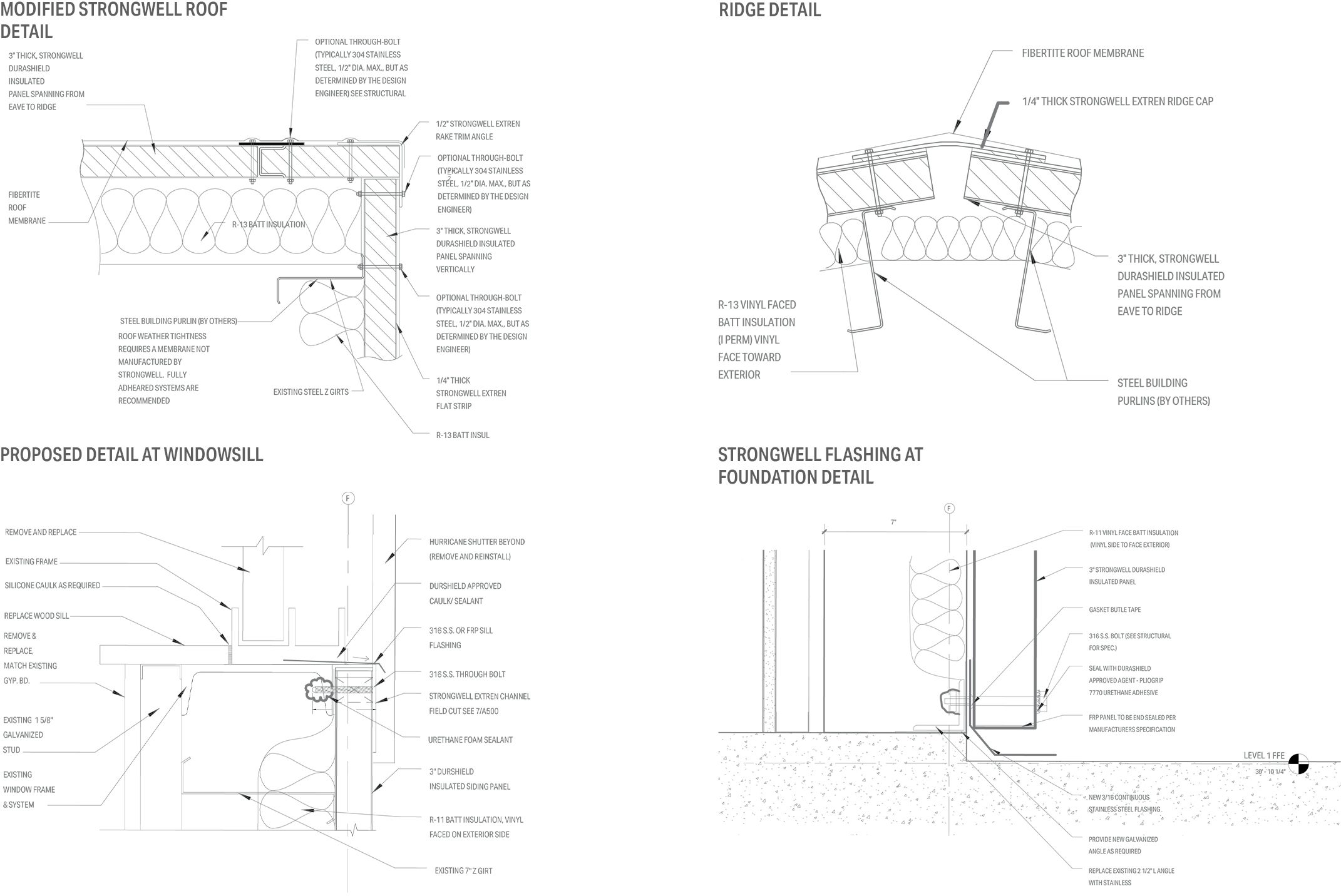 A 3" pre-insulated system with custom detailing and sealing allows for a complete envelope system, while vertical baton strips assure weather proofing while adding articulation. Stainless steel connectors and flashings are utilized throughout, and the roof panels are topped with a fiberseal membrane – the first use of a Durashield system on a residential facility.